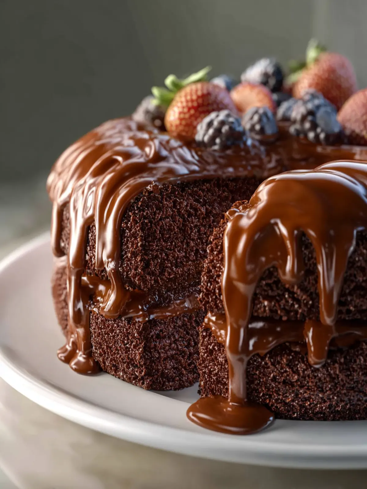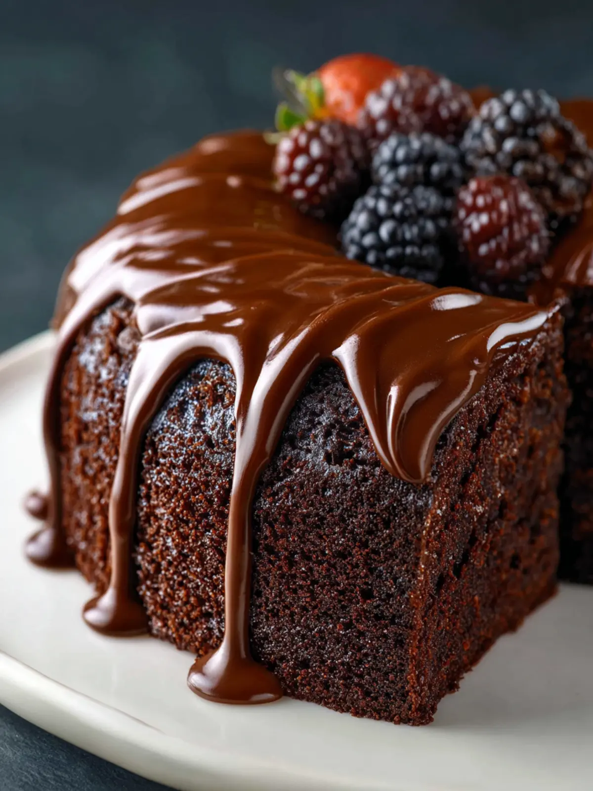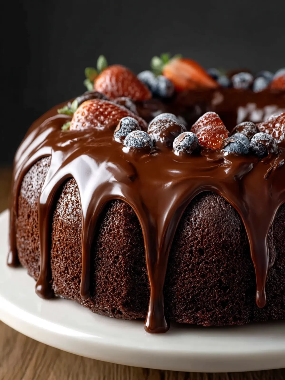 Slice the cake into generous pieces and serve it on a beautiful cake stand. A dusting of powdered sugar on top adds elegance, creating a stunning contrast against the rich chocolate.