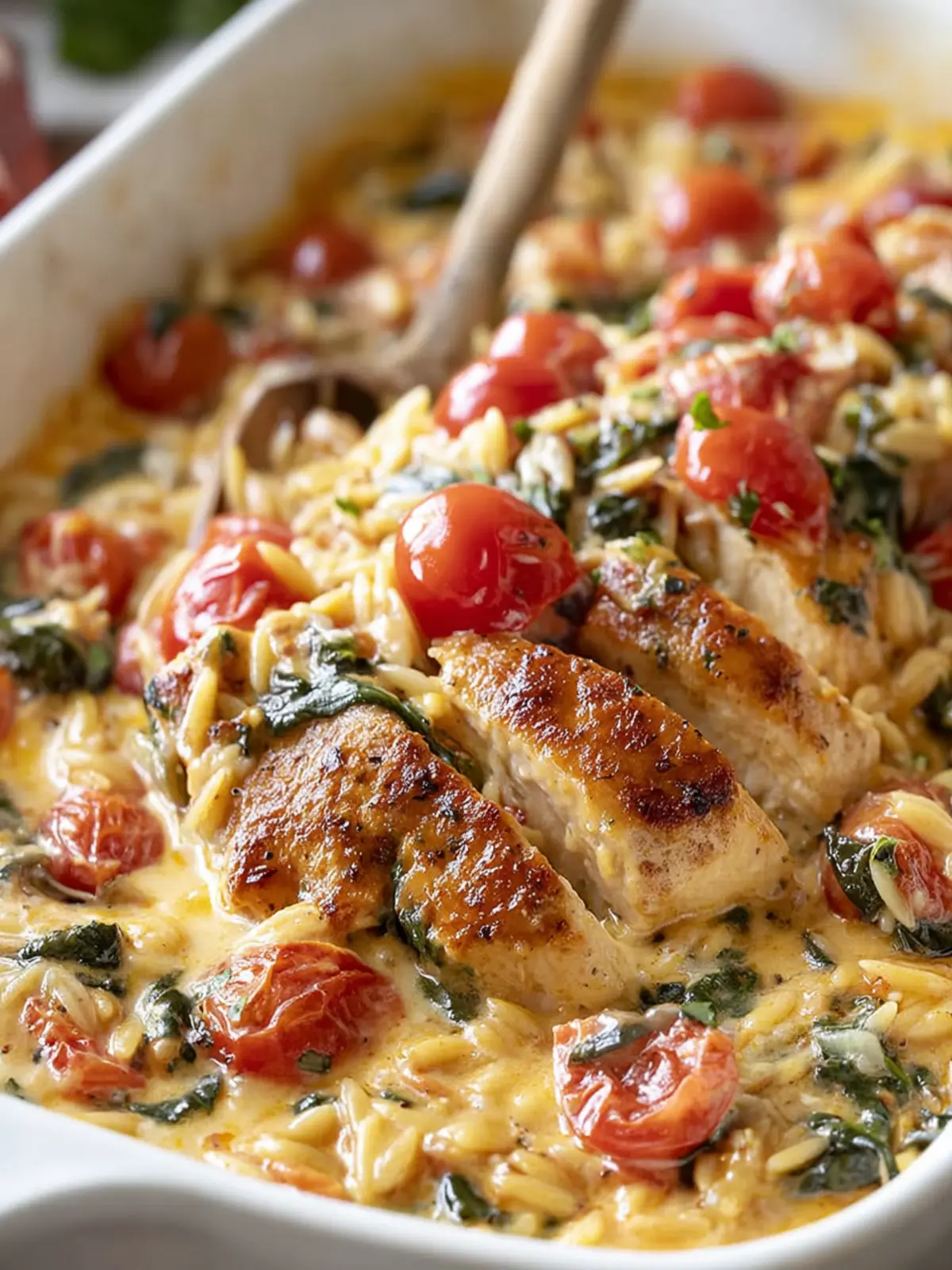 Introduction to Creamy Chicken Orzo Bake, Tuscan Style