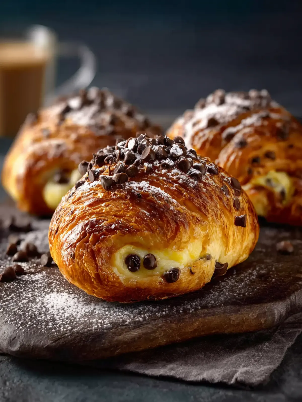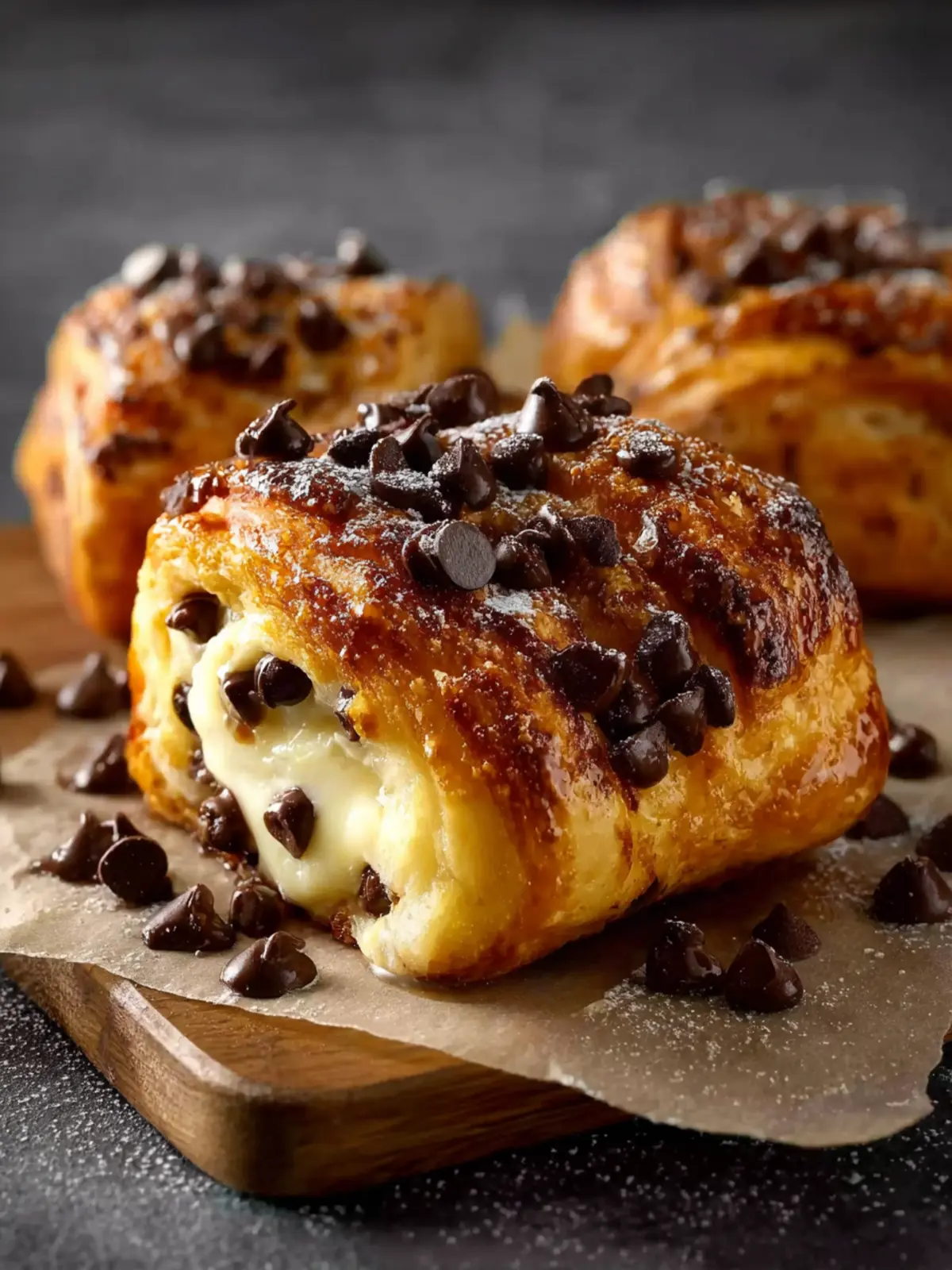 What truly sets these indulgent chocolate chip custard brioches apart is their unique texture. The soft, pillowy brioche dough pairs magnificently with the rich custard filling that envelops those melty chocolate chips. A perfect marriage that’s not just food, but an experience that evokes joy and nostalgia.