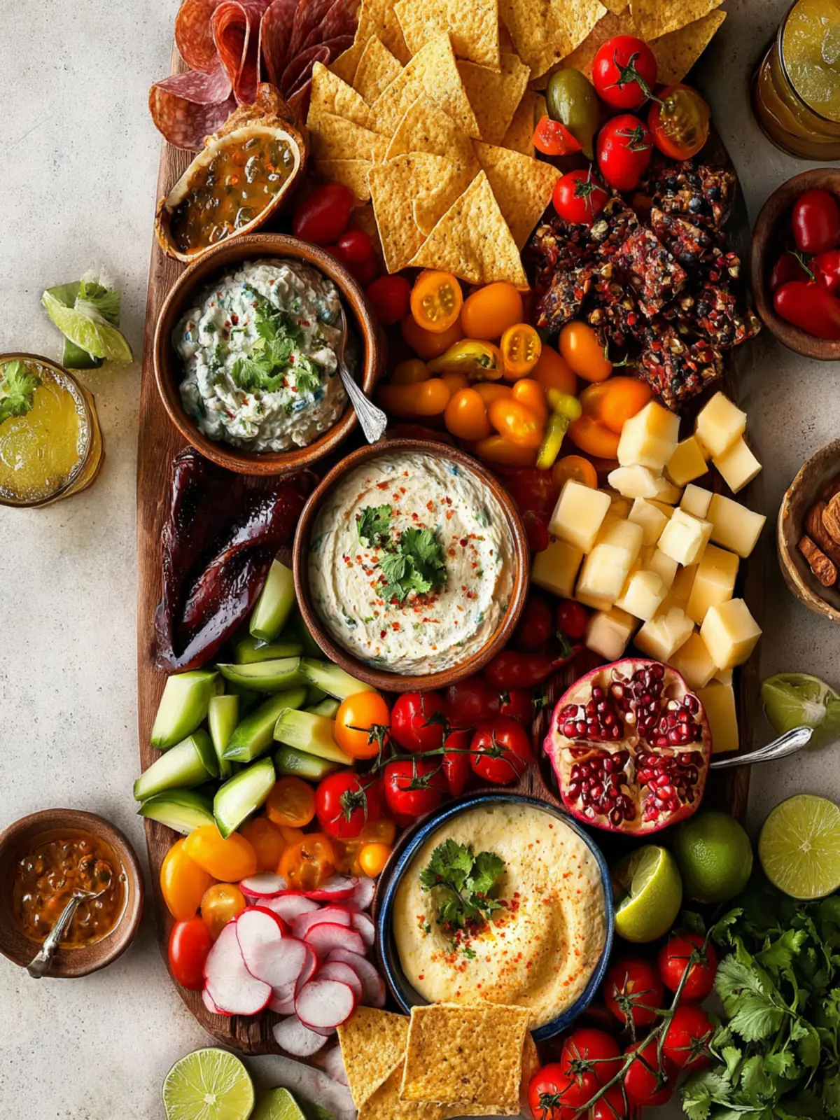 If you’re not a fan of traditional dips, there are plenty of alternatives to consider. For a fun twist, try a black bean hummus or a spicy avocado salsa. You can also whip up a creamy cashew dip or even a zesty salsa verde. The beauty of the Mexican-Inspired Vegetarian Charcuterie Board is that you can customize the dips based on your preferences or what you have on hand.