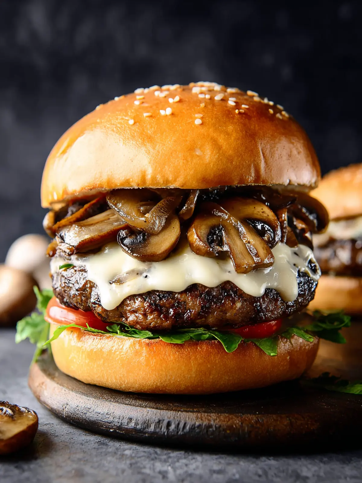 A delicious and juicy mushroom Swiss burger perfect for any grill master.