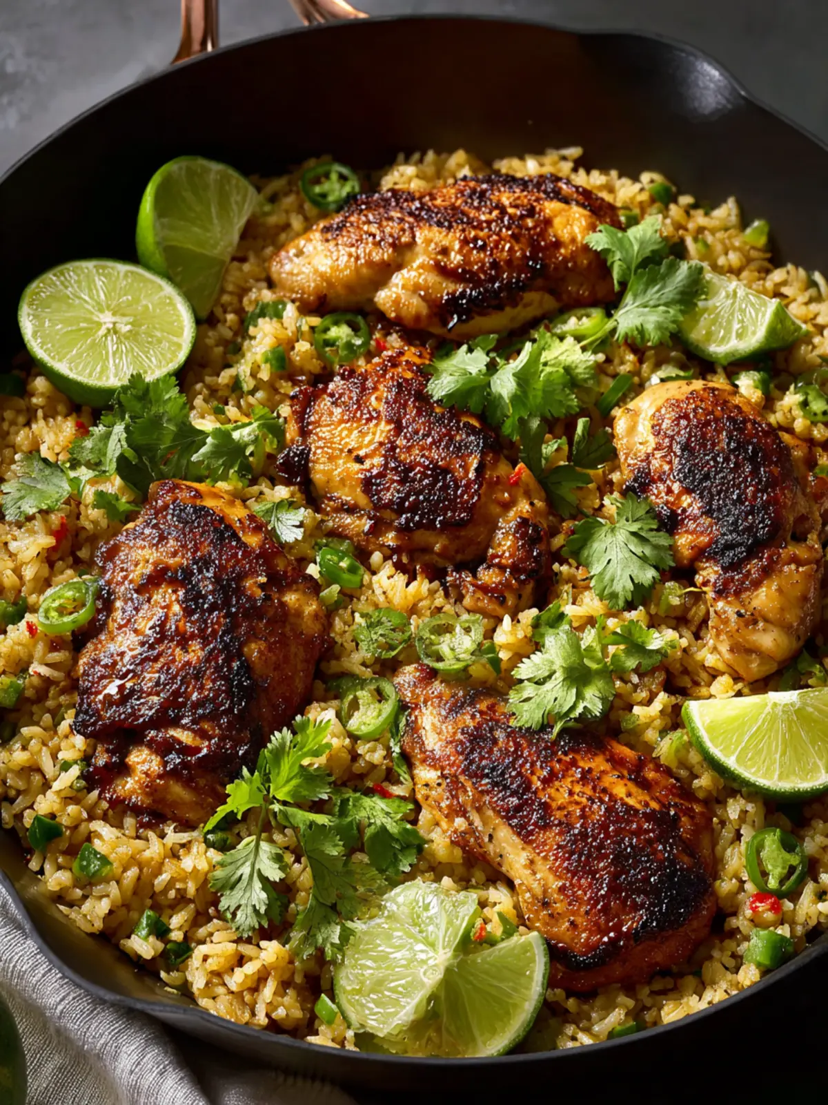 When cooking your chicken, sear it first to develop a deep color and flavor. Once it’s golden, don’t rush to remove it from the pan. Allow the chicken to finish cooking in the moisture of the rice; this lock-in flavor enhances the overall dish.