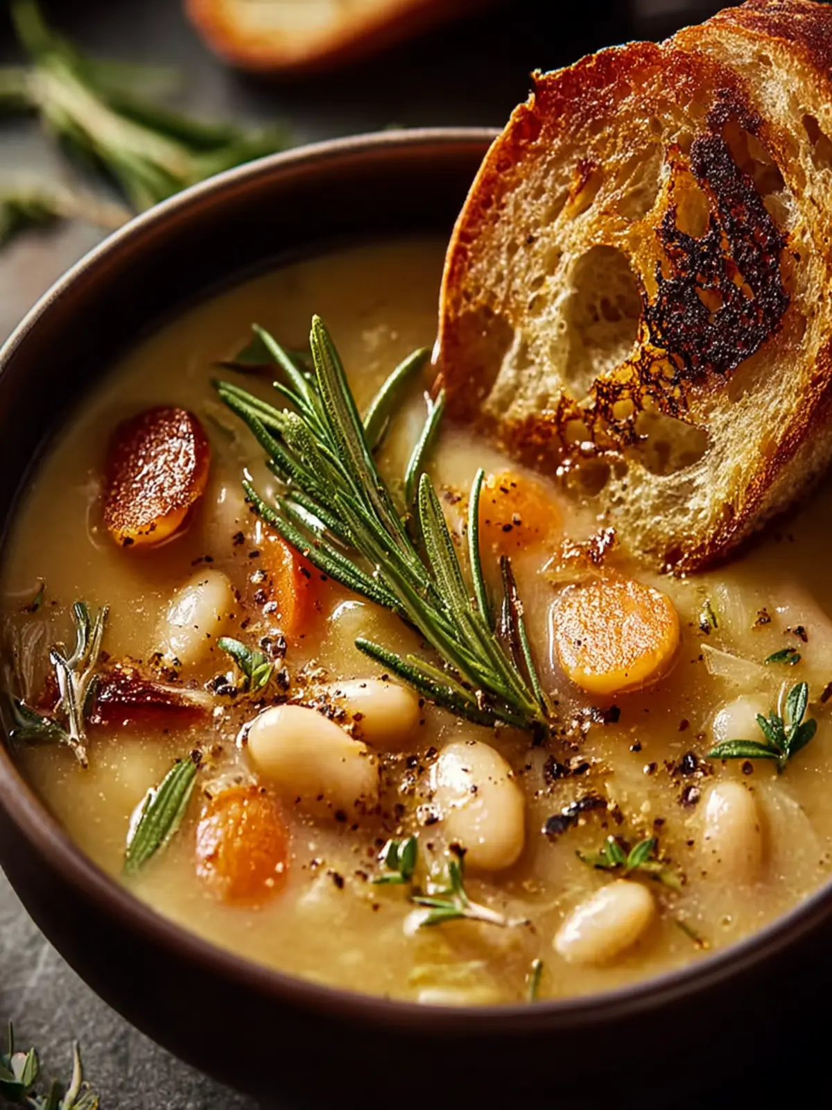 Nothing beats dipping a warm, crusty baguette into your soup. The texture contrasts perfectly with the creamy beans, soaking up all those rich flavors. You could also try garlic bread for an extra kick of flavor.