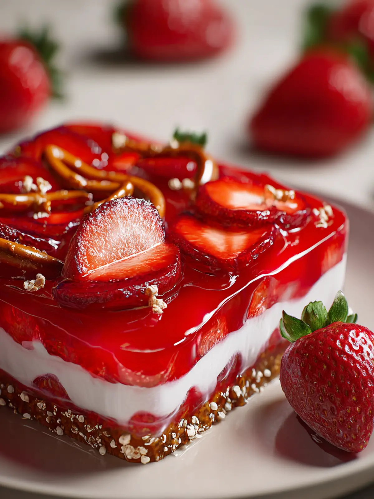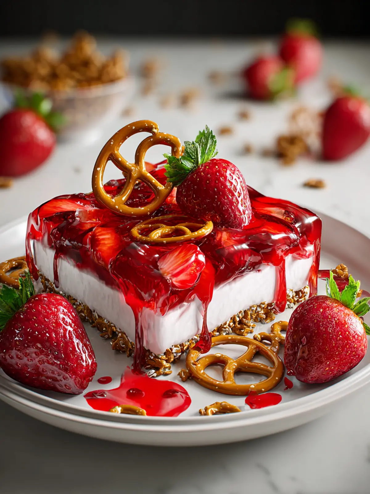 The first time I tried this vibrant dessert, I was captivated by the contrast of flavors—salty, sweet, and tangy all in one bite. It’s incredibly versatile, perfect as a side dish or a stand-alone sweet treat at any occasion. The blend of textures—from the crunchy pretzel crust to the smooth cream cheese layer and juicy strawberries—adds a layer of complexity that will keep your taste buds dancing.